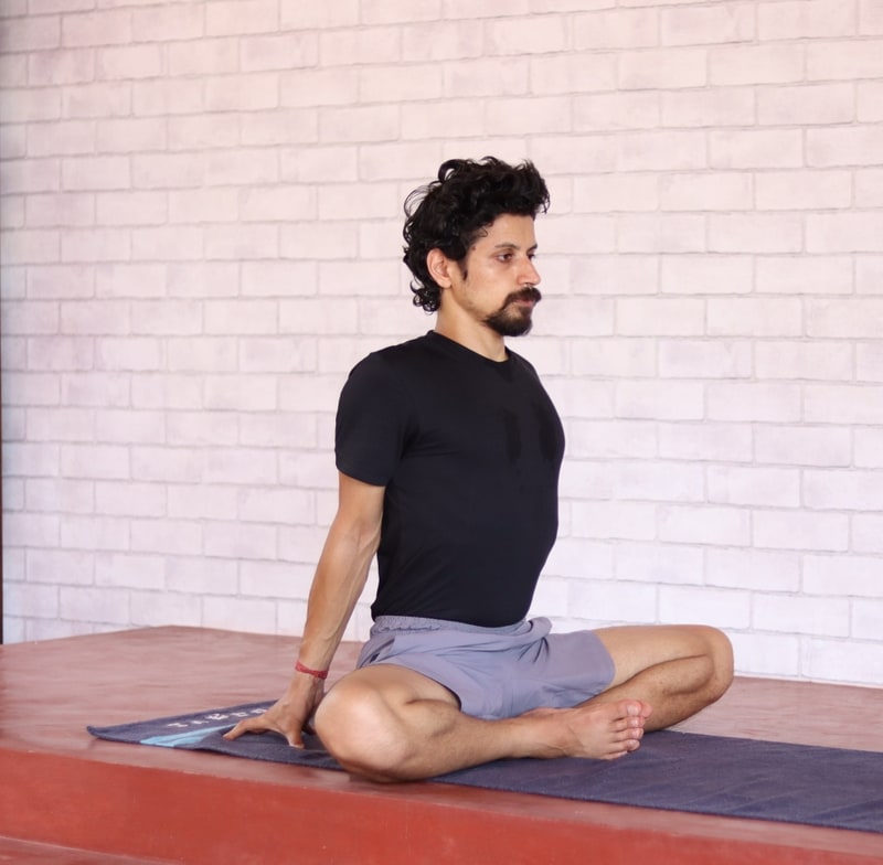 It might seem like a simple posture in the beginning. But for someone with tight hamstrings and a stiff back, it is difficult to bring the thighs close to the mat. If this is the case for you, regular practice will slowly help you open up the hips.